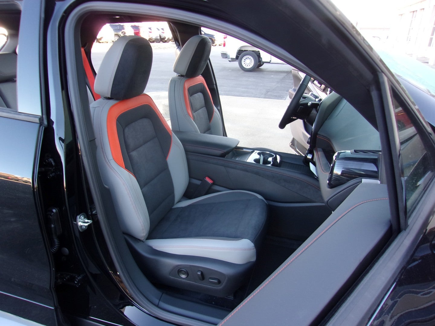 Interior Color Black/Medium Ash Gray With Argon Orange Accents, Perforated Suede/Evotex Seat Trim