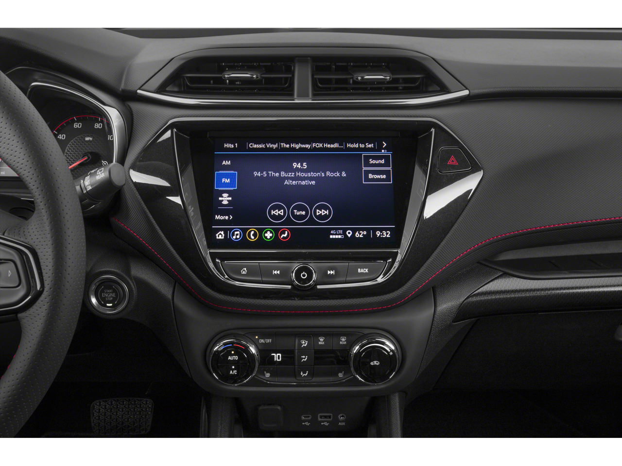 - Audio system, Chevrolet Infotainment 3 Plus system 8" diagonal HD color touchscreen, AM/FM stereo, Bluetooth® audio streaming for 2 active devices, Apple CarPlay and Android Auto capable, voice recognition, in-vehicle apps, cloud connected personalization for select infotainment and vehicle settings.