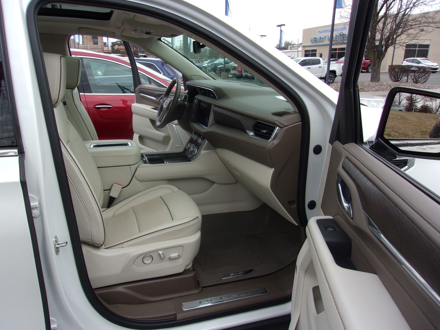 Pre-owned 2023 GMC Yukon Denali! Loaded with luxury, 4x4 for winter driving! Includes Ecotec3 6.2L V8 engine with Dynamic Fuel Management, 10 speed automatic transmission, Z82 trailering equipment package, magnetic ride control suspension, leather interior, heated and vented driver and front passenger seats, heated steering wheel, heated 2nd row bucket seats, sunroof, power tilt/ telescoping steering wheel, power rear liftgate, surround vision, front and rear park assist, Bose premium sound system, wireless device charging, GMC Infotainment System with Apple Car Play and Android Auto capability, OnStar capable, OnStar 4G LTE Wi-Fi Hotspot capable and XM satellite radio capable. Stop by Henry Martens Chevrolet-Buick-GMC to check it out and talk to one of our salespeople or call 1-913-828-4124, or you can text us at 1-913-755-9035. All of our pre-owned vehicles receive a thorough, extensive inspection from our certified technicians. You can view our entire inventory at martenschevy.com. Follow us on Facebook at Henry Martens Chevrolet-Buick-GMC.